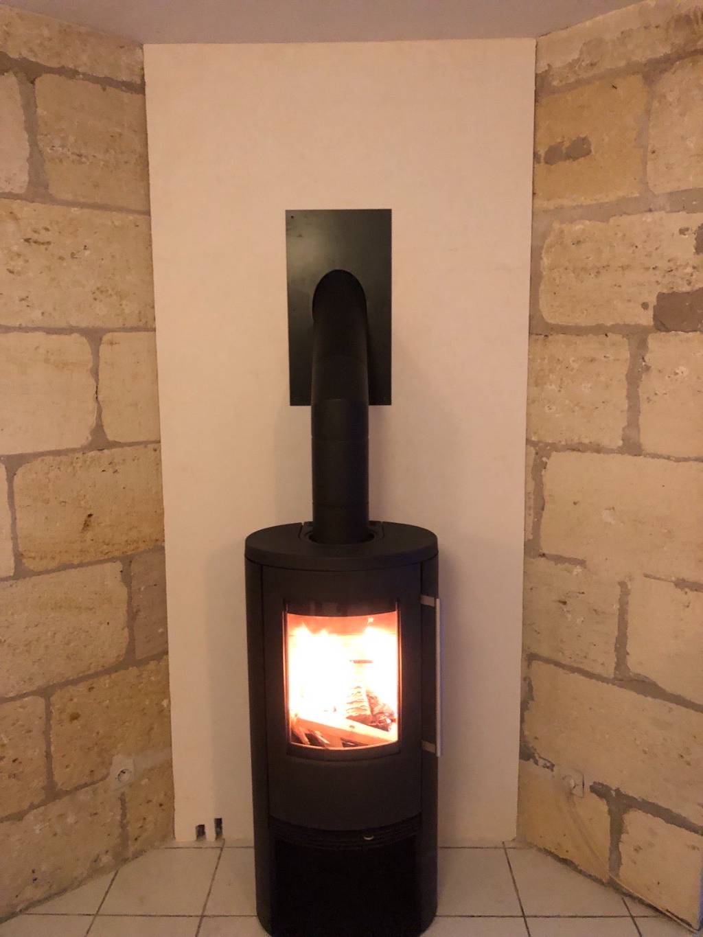 Nous avons procédé à la dépose de l'ancien poêle à bois, et de sa fumisterie. La démolition de l'ancienne fermeture, pour une remise en conformité de l'installation.