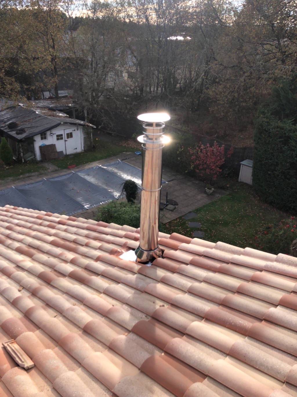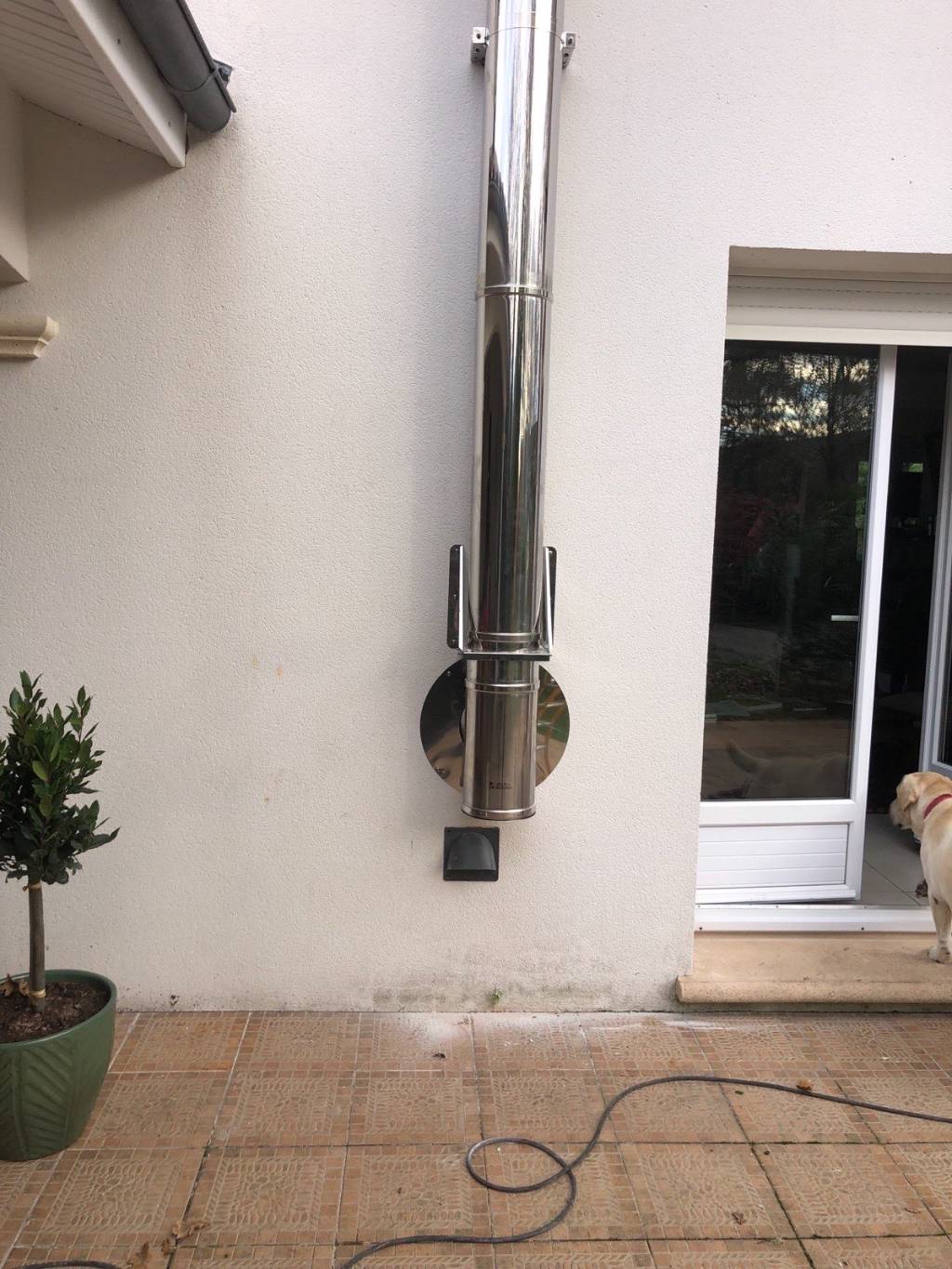 - Raccordement du conduit : Mise en place du conduit isolé en extérieur, avec une pente optimisée pour un tirage parfait.