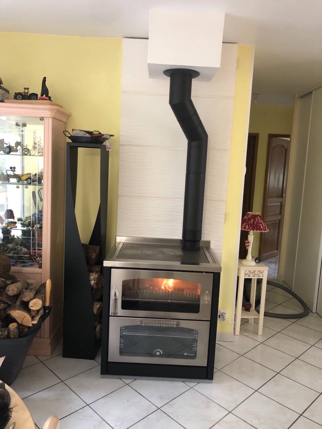 Résultat Une installation réussie, alliant esthétique, performance et respect des normes. Nos clients profitent désormais d’un chauffage économique et d’une cuisinière pratique, parfaite pour les repas en famille ou entre amis.
