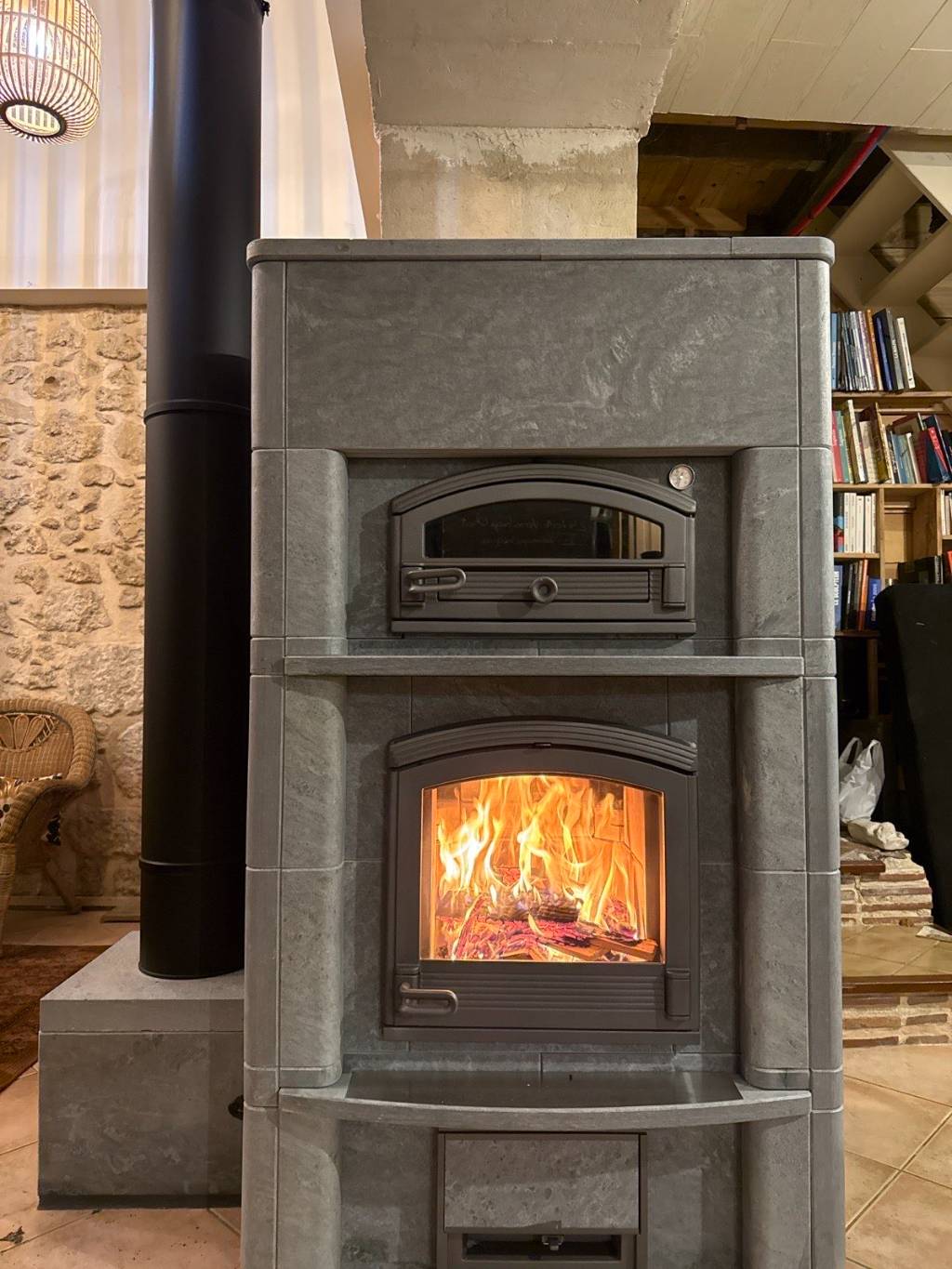 Localisation : Montprinblanc (33370), Gironde, Nouvelle-Aquitaine Type de projet : Rénovation énergétique globale avec installation d’un poêle de masse polyvalent Modèle installé : Tulikivi TLU 2000/91 – Poêle de masse 100 % en stéatite massive avec four de cuisson intégré Technologies mises en œuvre : Conduit inox isolé sur mesure, arrivée d’air extérieure dédiée, mise en œuvre intégrale par nos techniciens certifiés