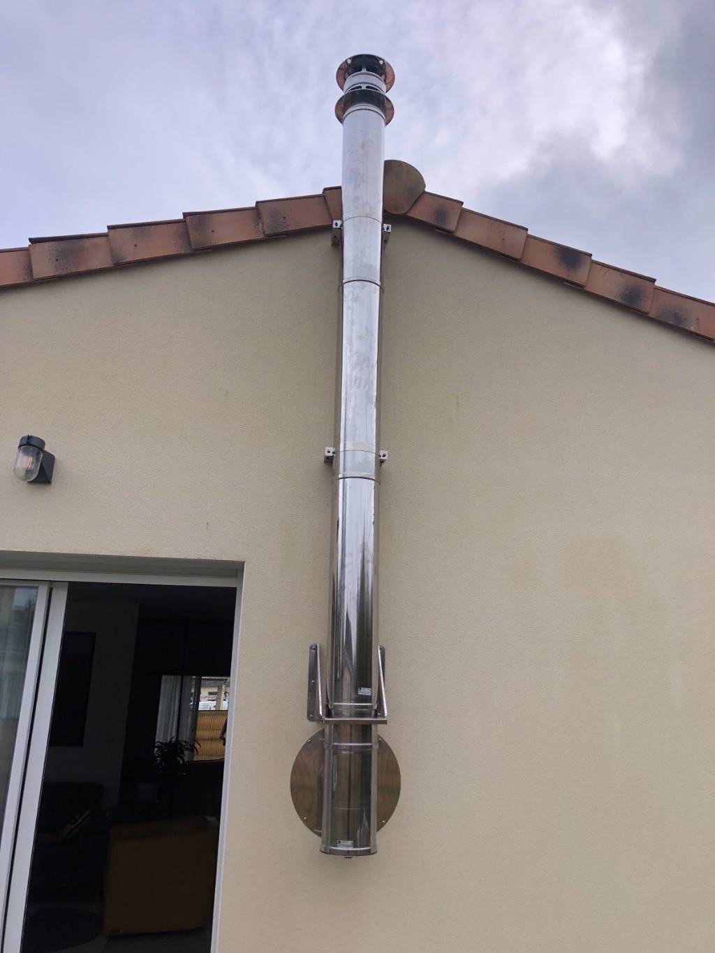 - Installation d’un conduit extérieur en inox double paroi isolé :